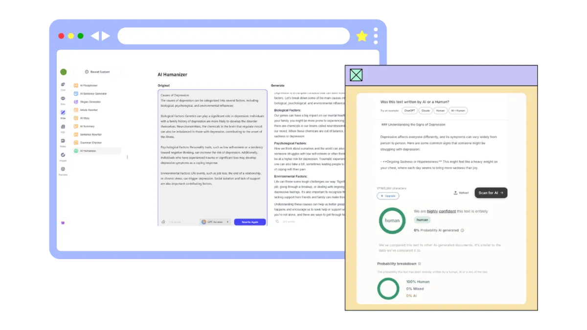 Our AI Humanizer is a leading online AI-to-human text converter, transforming AI-generated content into human-like, engaging text. It's ideal for various applications, ensuring content is relatable and free from a robotic tone.