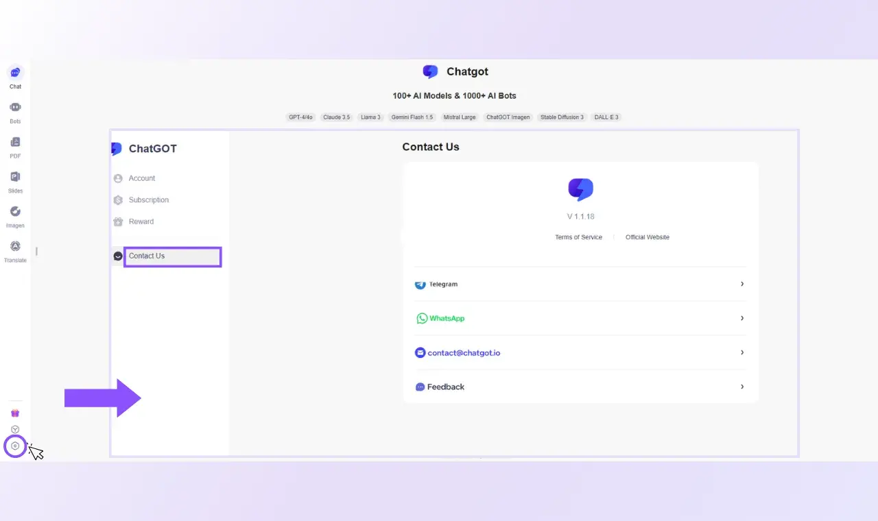 If you have any other questions, please contact our support team at contact@chatgot.io
